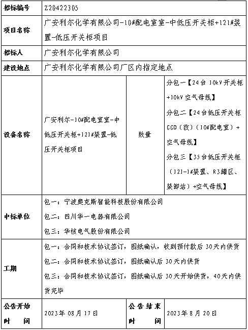 利爾化學股份有限公司采購中心受荊州三才堂化工科技有限公司委托,擬對東區35KV配電所-低壓開關柜(84臺...