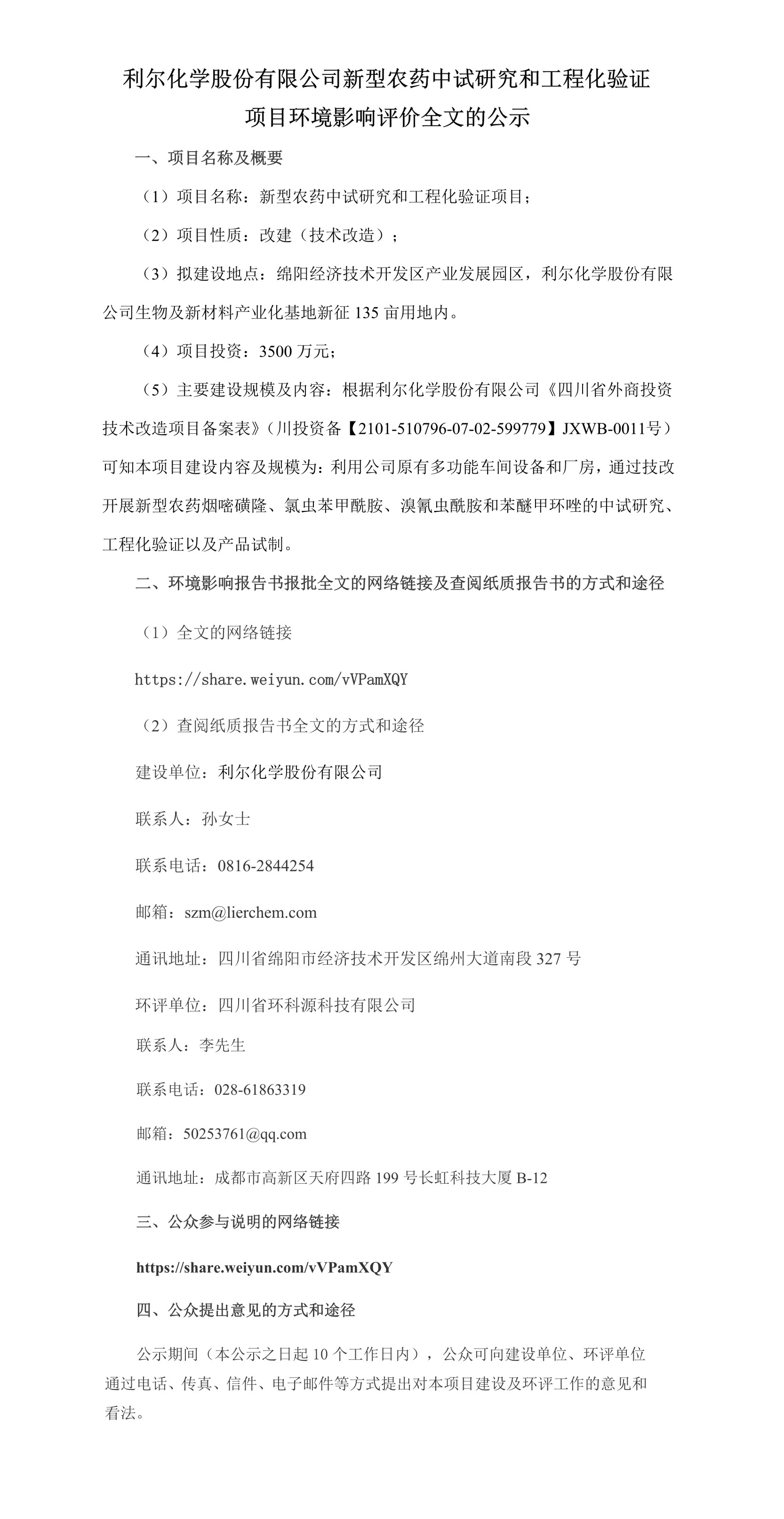 廣安利爾化學有限公司電纜公招采購中標公示 項目名稱廣安利爾化學有限公司技改擴能及配套設施建設用電纜采購項目業主廣安利爾化學有限公司...