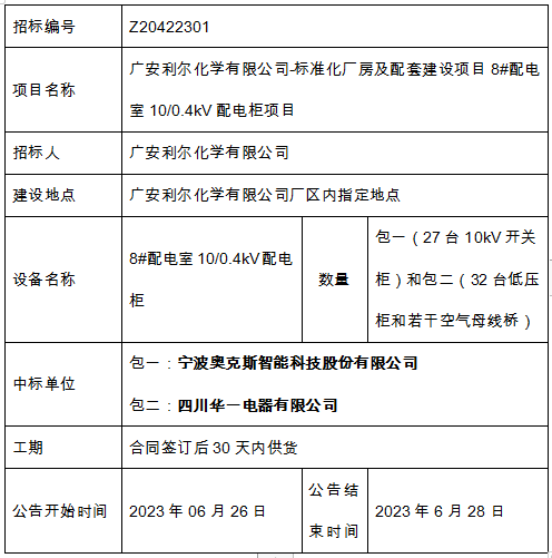 中標結果公示